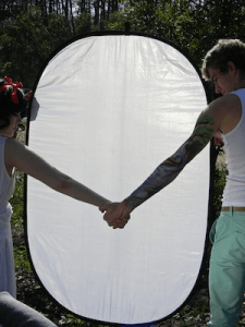 The models for Zoe and Gavin get ready. Zoe is being portrayed by Danielle Smith. You’ve already met Bradley Nethercutt, who is Gavin. He does have a shapely forearm, I’ll give him that.