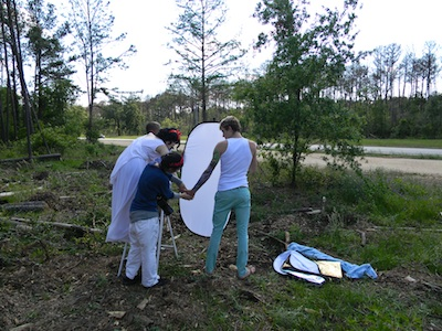 This is the crew setting up for the shoot. Kendall has a crew. I have an incredibly patient wife and three dogs who go batshit insane whenever a bird flies past the house or the wind blows or fails to blow.