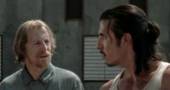 Rick, Darryl, and T-Dogg lead the prisoners to the cell block “next door” after Rick and Lori Have A Talk. She’s worried about having the prisoners close by. Rick assures her that he’ll kill them all. Lori assures him that he’s no killer even though he’s killed just about every person they’ve met who didn’t live on a farm and that he’s made it clear he’ll kill everyone they ever meet. He is reassured that he’s no killer, just a man forced to do drastic things under moderate conditions. Seriously, thank god that hothead Shane is no longer around, because then there would be tension and potential violence. Also, Rick tells Glenn to kill Herschel if he comes back dead. He gives him handcuffs. Glenn looks angsty about killing his girlfriend’s dad.