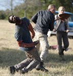 Which leads me to another question. These people who’ve been sweating and zombie-killing and digging ditches in the same exact clothes for over a year now haven’t changed their clothes at all? Seriously, fuck how bad the living dead must smell. I can only imagine the Walking Stench this group is carrying around. That shit’s nasty, guys. Find an undershirt. If they can’t be bothered to change their clothes, imagine how disgusting their breath must be. Gahh, dog food and months of plaque build-up and I’m gonna hurl if I keep going with this.